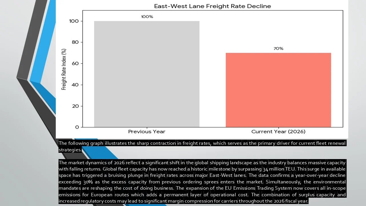 This graph illustrates the abrupt downturn in freight pricing, which has become the core catalyst for modernizing global fleets. As market rates soften, carriers are increasingly compelled to replace older tonnage with more efficient vessels to preserve margins. This shift reflects a strategic transition where operational cost-reduction, rather than high revenue, dictates fleet renewal. The Sustained downward pressure on freight rates may accelerate the decommissioning of conventional vessels as they become increasingly uncompetitive under new environmental cost structures.The Authoritative Framework of Global Maritime Reporting